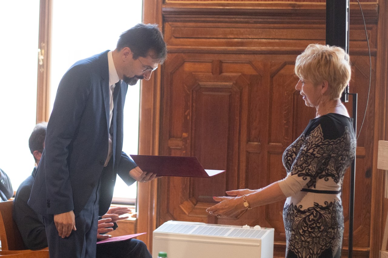 A 2021. június 23-i egyetemi szenátusi ülésen, napirend előtt került sor a közelmúltban sikeresen habilitált két oktatónk számára a habilitációs oklevél átadására.