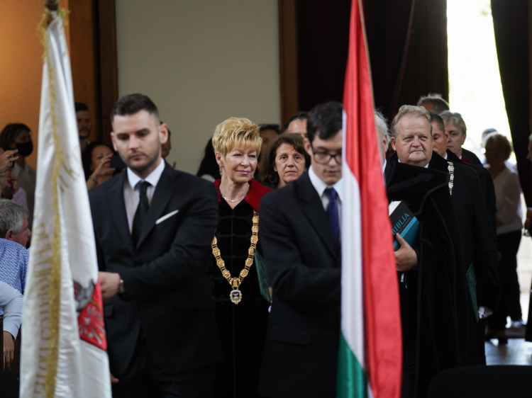 Prof. Dr. Miskolczi-Bodnár Péter dékán megnyitó beszédében hangsúlyosan szólt az ünnepélyes percek jelentőségéről, a doktoravatás meghitt pillanatairól, amely életre szóló élményt jelent: több éves munka eredményét, egy álom valóra válását. Igaz tartalmat nyertek a 264. dicséret sorai: „Áldjad Őt, mert az Úr mindent oly szépen intézett…”
