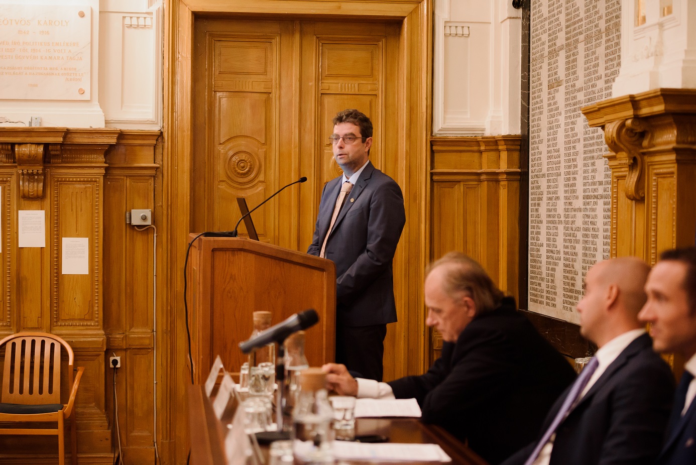 A konferenciát Dr. habil. Homicskó Árpád Olivér a KRE ÁJK Nemzetközi és tudományos dékánhelyettese és Dr. Bánáti János az Országos Ügyvédi Kamara elnöke nyitották meg.