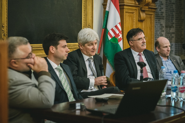 Az Infokommunikációs Jogi Tanszék 2017. február 14-én megtartotta a tavaszi félév első Tudományos Diákköri ülését. Az esemény a Budapesti Ügyvédi Kamara (BÜK) Dísztermében került megrendezésre. A technológiai fejlődés hatása a jogászi hivatásrendekre című kerekasztal beszélgetésen a hivatásrendek kiváló képviselői vettek részt, az ügyvédséget a házigazda Réti László a BÜK elnöke mellett Réczicza István a Dentons magyarországi irodavezető partnere képviselte, a bírói kart Kovács András, a Kúria tanácselnök bírája, egyetemi docens (ELTE-ÁJK), míg a közjegyzők hangját Parti Tamás, a Budapesti Közjegyzői Kamara elnöke szólaltatta meg. A beszélgetést a Tanszék vezetője, Tóth András egyetemi docens vezette.